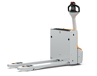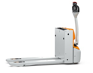 Fits in even the smallest of spaces. Or inside a lorry. The EXH 14 pedestrian low lift pallet truck is so compact and agile that you can manoeuvre it effortlessly around the loading area of a lorry. If necessary, even with the tiller raised – thanks to the intelligently positioned controls. The ergonomics really come into their own when the tiller is in the horizontal position: the extra-long tiller protects your feet while enabling you to maintain a back-friendly posture, and the LED display in the tiller head provides you with all relevant vehicle information at a glance. In particular, the low Ast makes the EXH 14 a manoeuvring marvel in the tightest of spaces. It is robust, powerful on the ramp, boasts excellent lateral stability and performs admirably even in industrial environments. This is also true when used away from home. With a chassis height of just 740 mm, the EXH 14 can be easily transported in a lorry. Its standard 15 A on-board charger and optional lithium-ion technology ensure it is always ready to go.